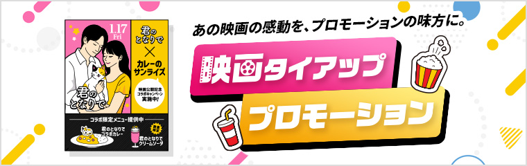 映画タイアップに限らず、シネアドと組み合わせたプロモーションも可能です。映画のIPを使った施策をご検討の際は、ぜひお気軽にお問い合わせ・ご相談ください。